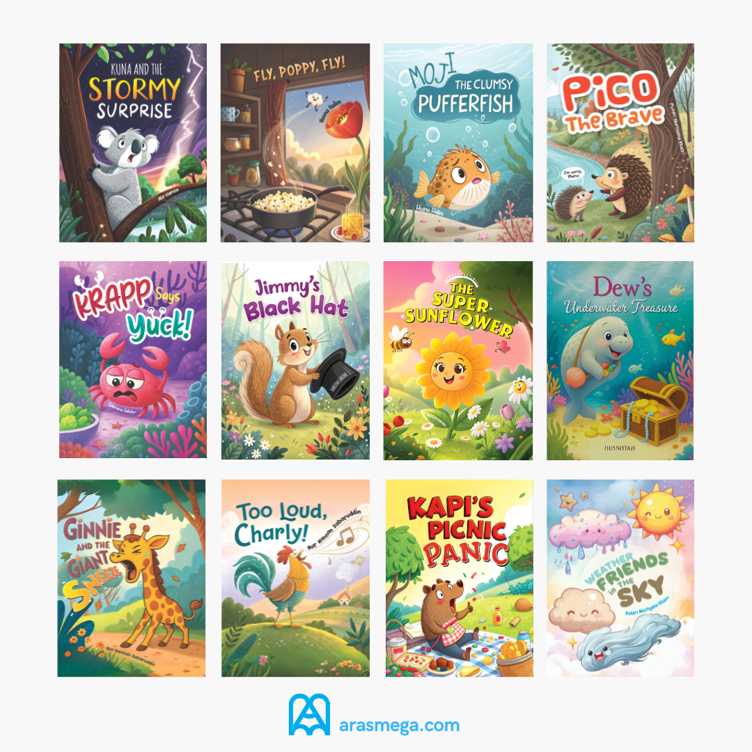 This collection of 12 children’s storybooks is full of fun, adventure, and simple life lessons. Kids will meet talking animals, brave little heroes, magical fairies, and friendly characters who teach about kindness, honesty, courage, and never giving up. Each story is written in easy English with black-and-white pictures so children can read and colour at the same time, making learning more fun and creative. These books are perfect for early readers who want to learn English while exploring exciting tales that spark imagination and make reading enjoyable.