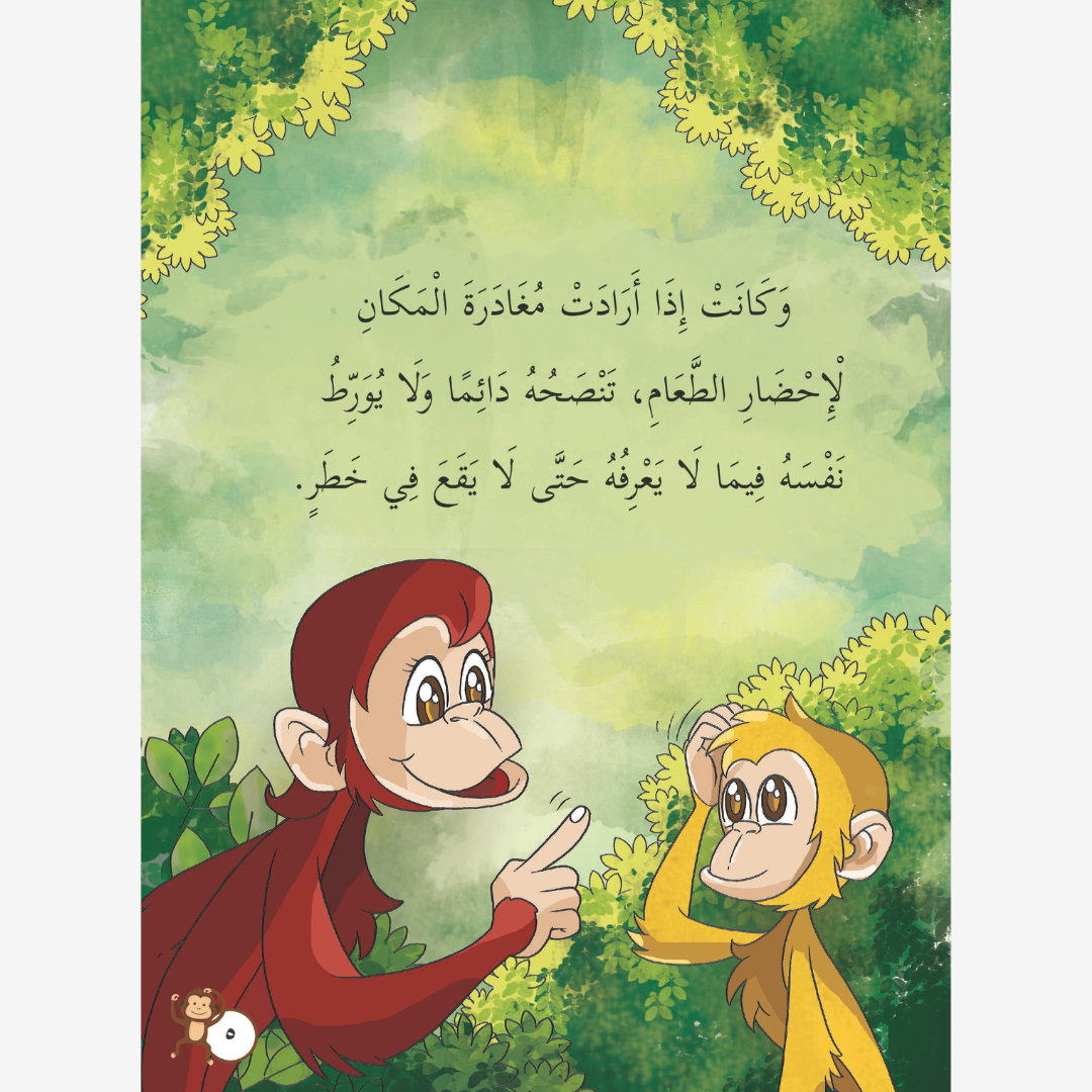 Kisah seekor ibu kera dan anaknya yang berpindah ke habitat yang baharu. Ibu kera telah berpesan kepada anaknya supaya sentiasa berhati-hati kerana tidak diketahui bagaimana situasi sebenar di habitat baharu dan dikhuatiri ada bahaya yang tidak terduga. Suatu hari, anak kera mengambil keputusan untuk mengabaikan pesanan ibunya. Sesuatu telah berlaku kepada anak kera akibat daripada tidak mendengar nasihat orang yang lebih tua. Apakah yang telah berlaku kepada anak kera?
