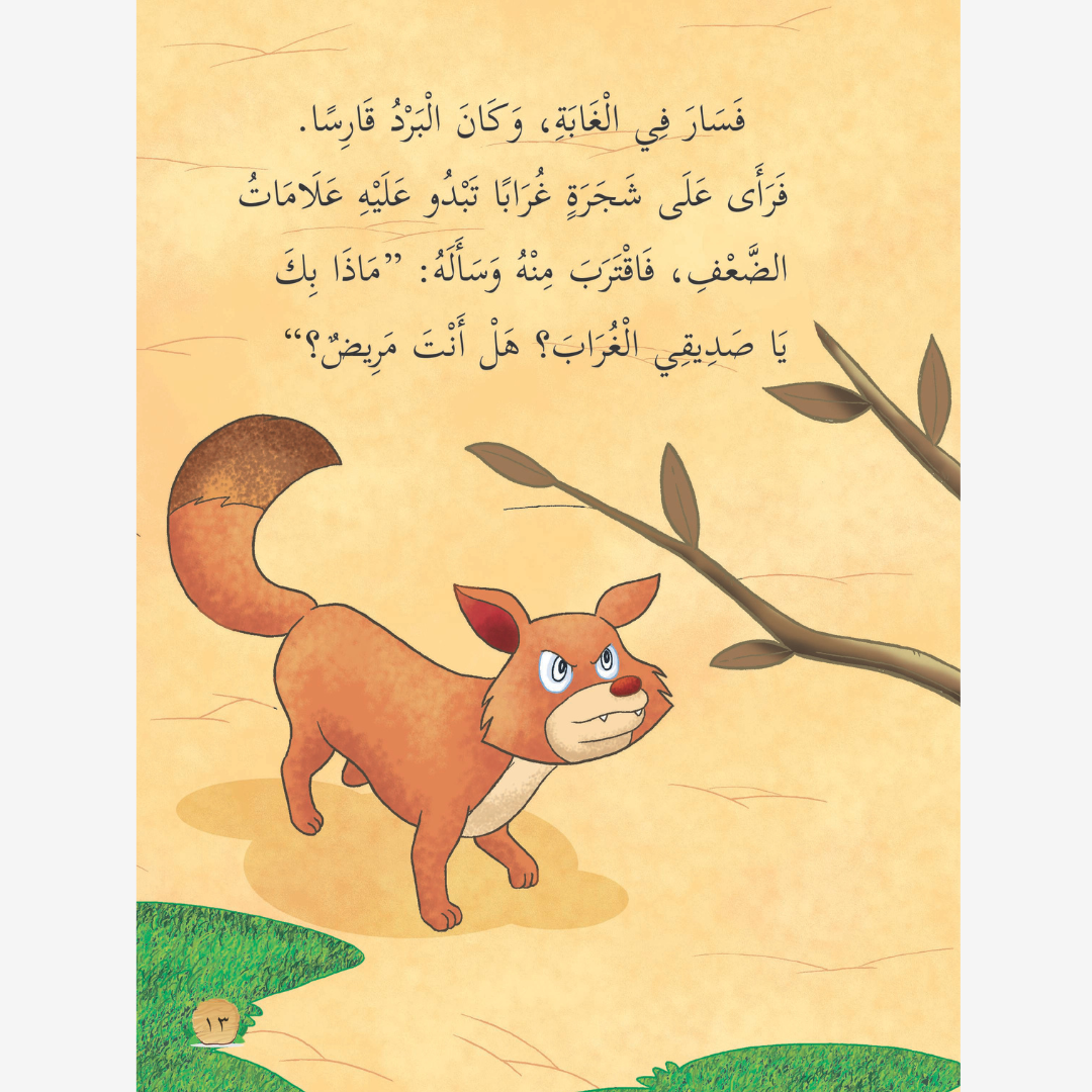 Kisah seekor musang yang berlagak dan pemalas. Di saat seluruh haiwan di hutan mengumpulkan bekalan makanan masing-masing sebagai persediaan menghadapi musim sejuk, si musang sahaja yang duduk beristirehat. Namun, apabila tiba musim sejuk, musang berasa sangat lapar dan memerlukan makanan segera. Sampai suatu saat, si musang ternampak seekor burung gagak di atas dahan pokok sedang dalam kesejukan. Musang telah melakukan helah supaya si gagak mengikutnya pulang. Apakah helah musang dan bagaimana nasib burung gagak pada akhirnya?